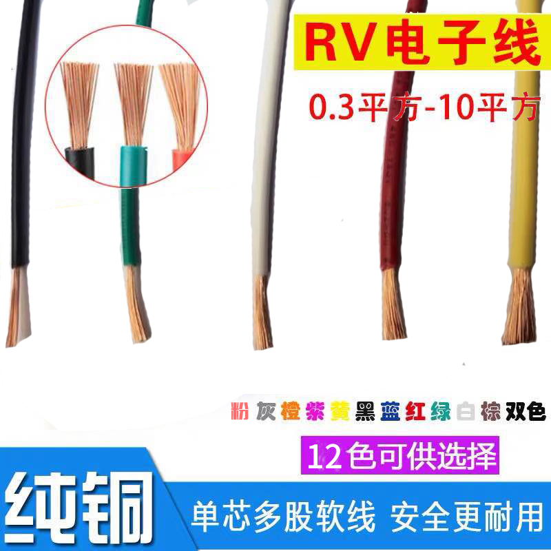 National standard RV BV BVR single-core multi-strand soft and hard pure copper wire 0 5 0 75 1 1 5 2 5 square electronic wire