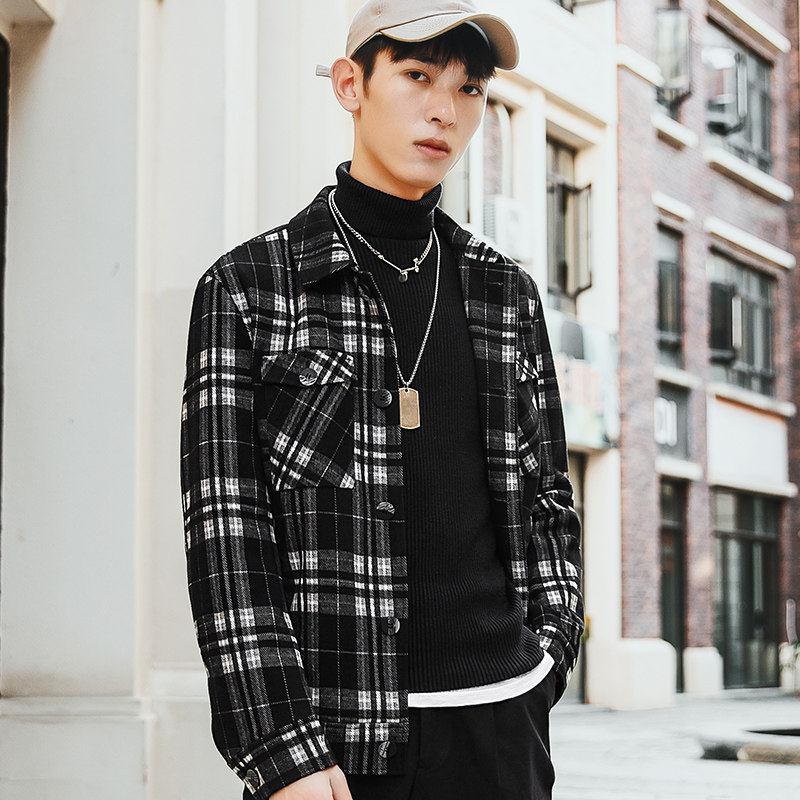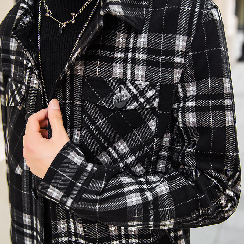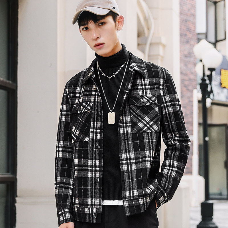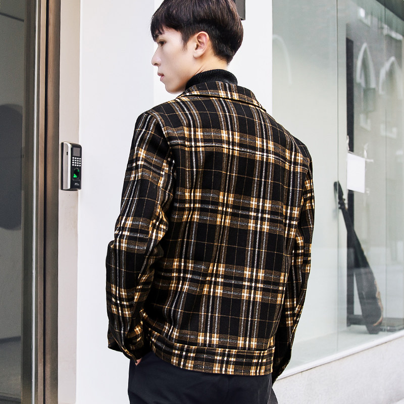 Spring Autumn Season Plaid jacket Men's Korean version Trend loose casual blouse Short Fried Street Fur Coats Men's Clothing