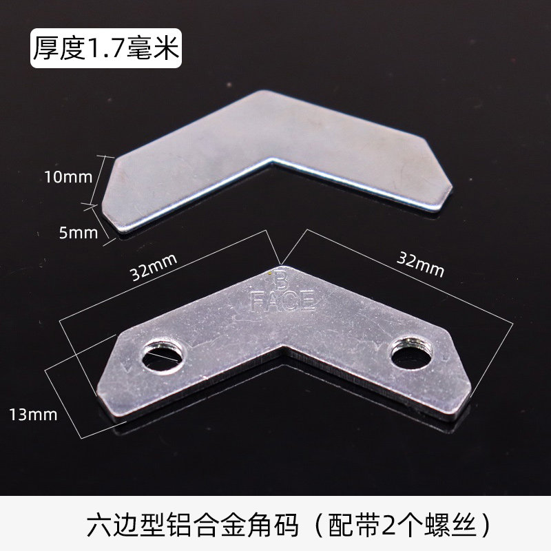 Polygonal aluminum alloy angular code L type crystal porcelain frame fixed straight connection sheet hexagonal angle code 50 cover with screw