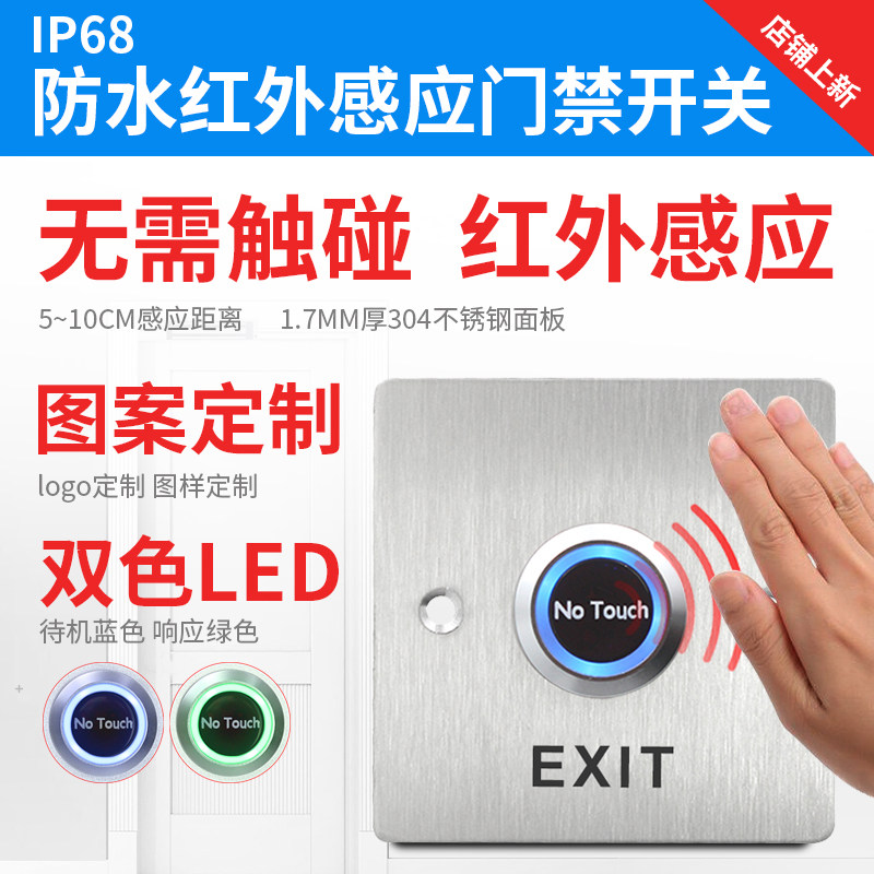 Waterproof infrared sensor access control switch automatic door switch 86 panel concealed column non-touch exit button