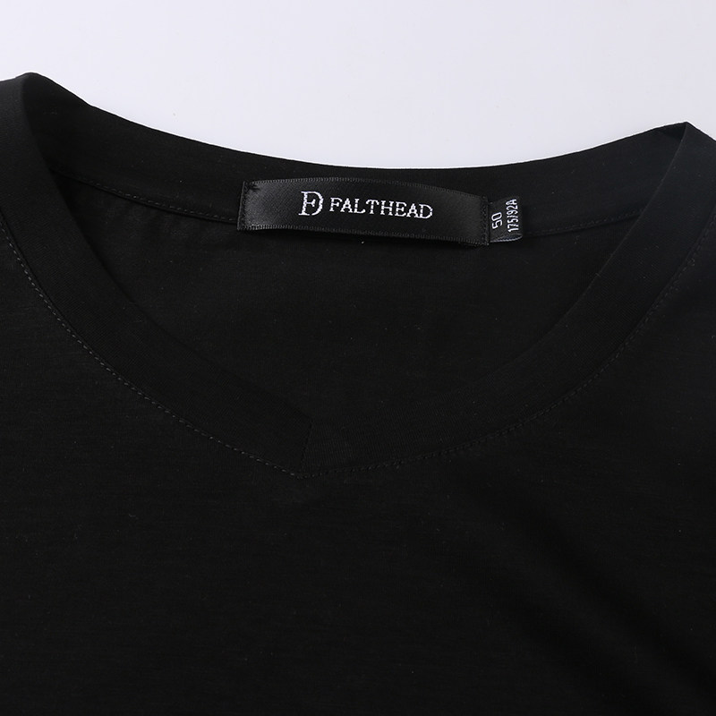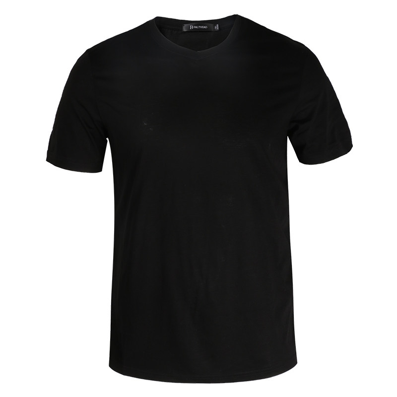 Fairfat short-sleeved T-shirt men's summer thin section chicken heart V-neck young and middle-aged fashion casual solid color double mercerized cotton