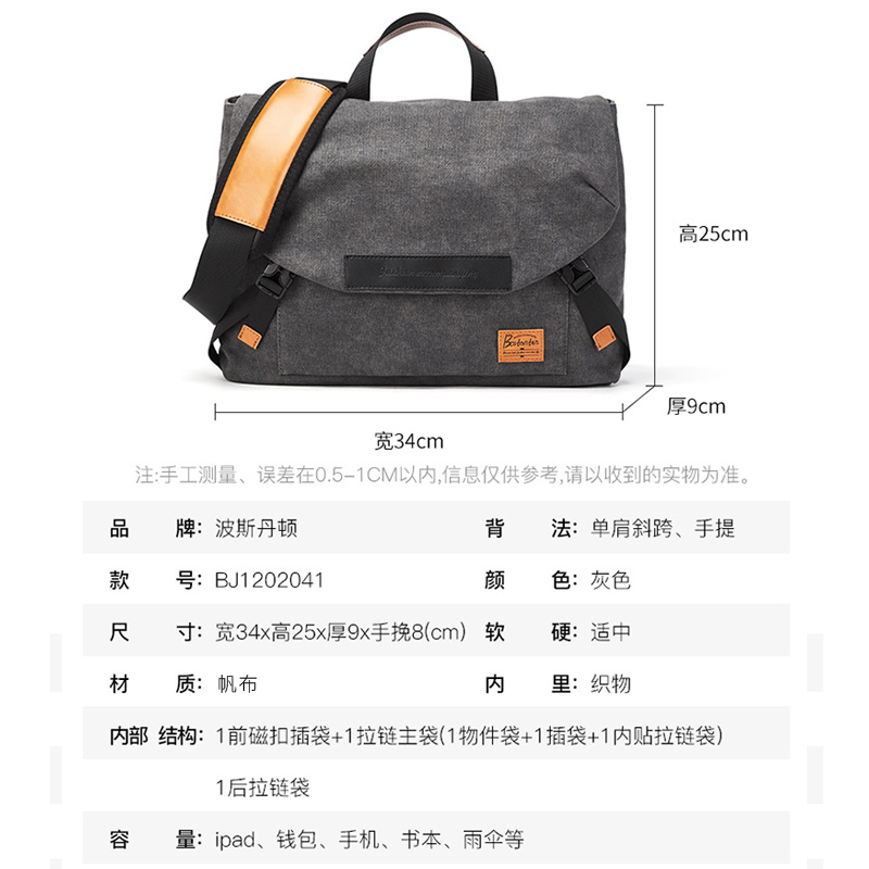 Single Shoulder Bag Men Skew Satchel Bag Men Tide Card Canvas Large Capacity Carry-on and Bag Boys College Day Department
