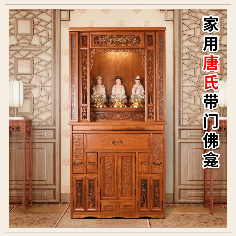 Buddha's niche cabinet with door home solid wood for table Buddha cabinets chaeseyeshivare temples dedicated to Gonggong Statue cabinet Great wishes