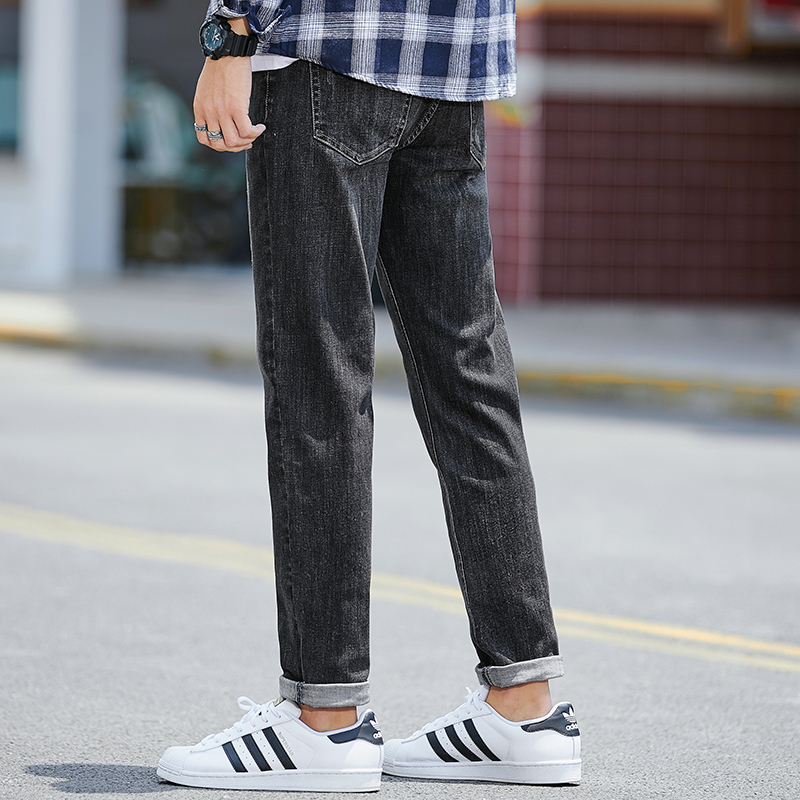Hanska spring and autumn new black straight stretch denim trousers men's Korean version of the tide brand flow slim wild pants