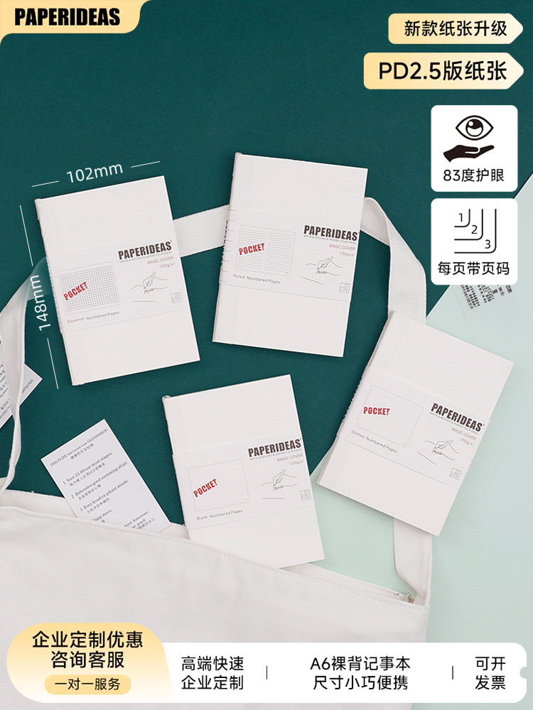 PAPERIDEAS pocket nude package A6 small notebook page number book simple business portable notepad mini portable account book square dot matrix blank pocket book small notebook