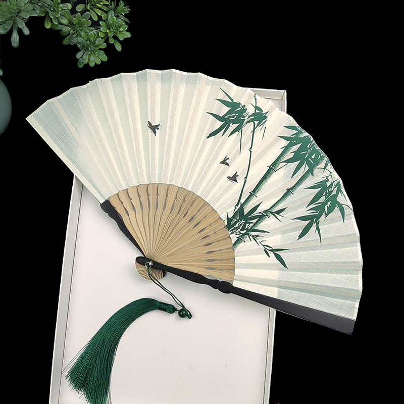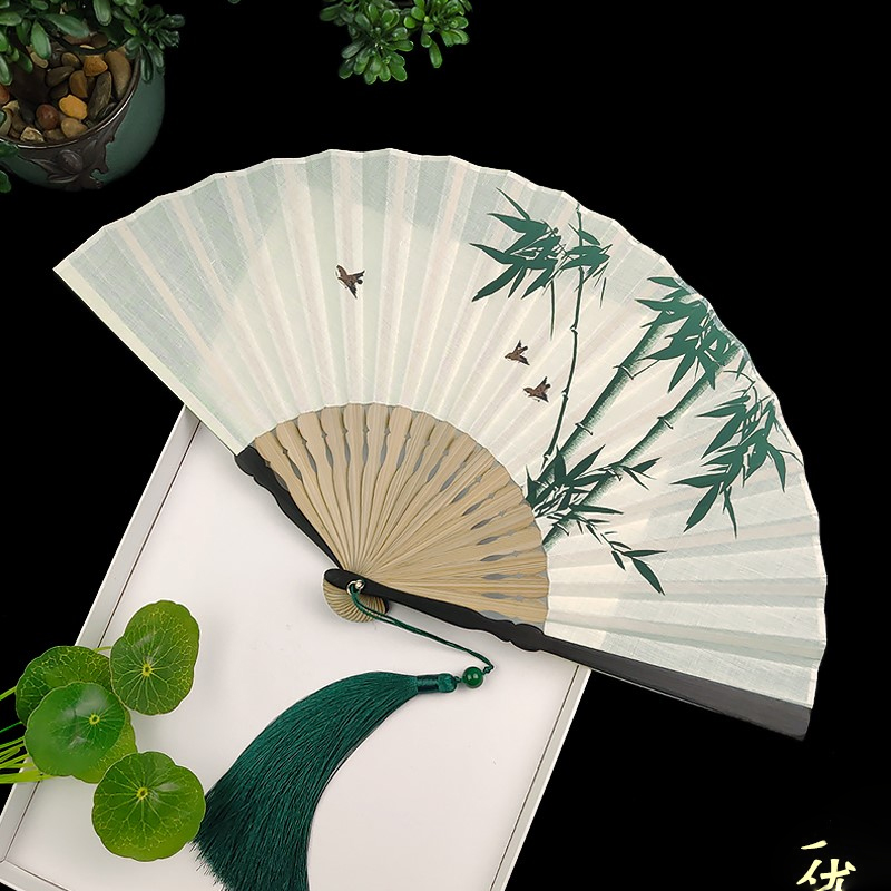 Black 7-inch cotton linen fan (bamboo) Seven inch cotton linen fan (fish) Seven inch cotton linen fan (crane) Hehuan bamboo (green noodles gold bamboo) Hehuan bamboo (water ink wind) 22 cm cotton fabric Xianglong fan black 22 cm cotton cloth