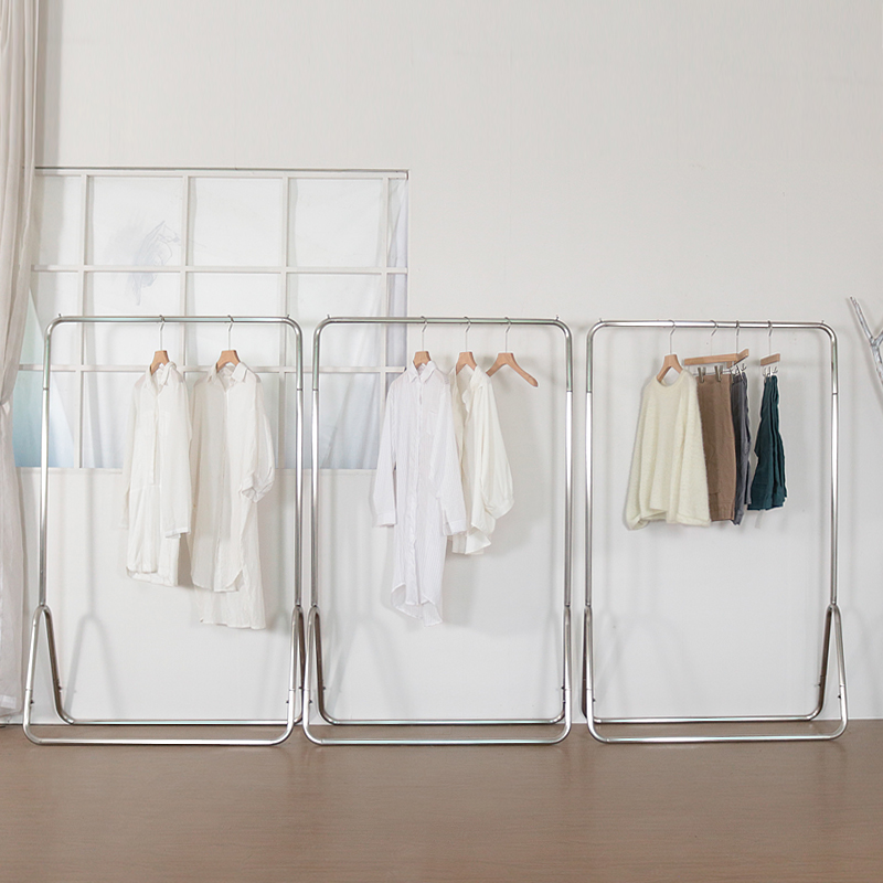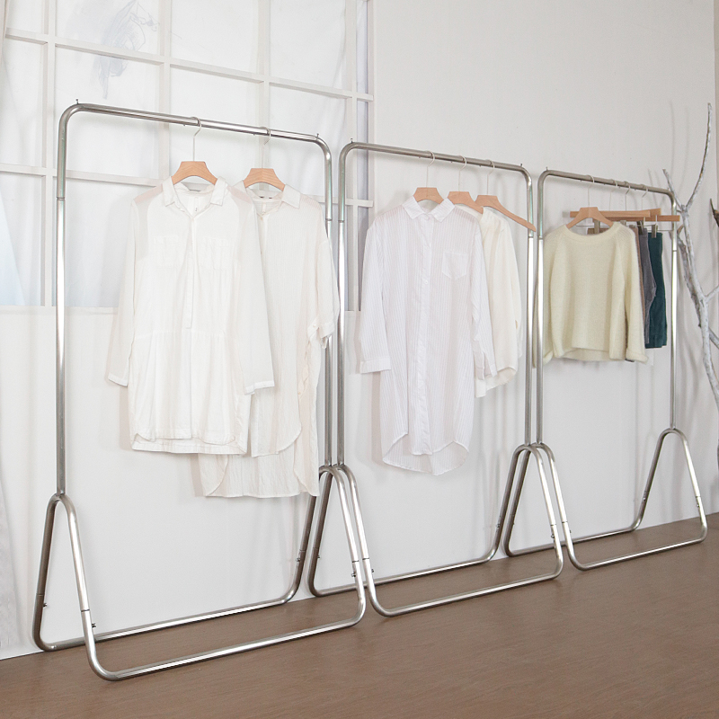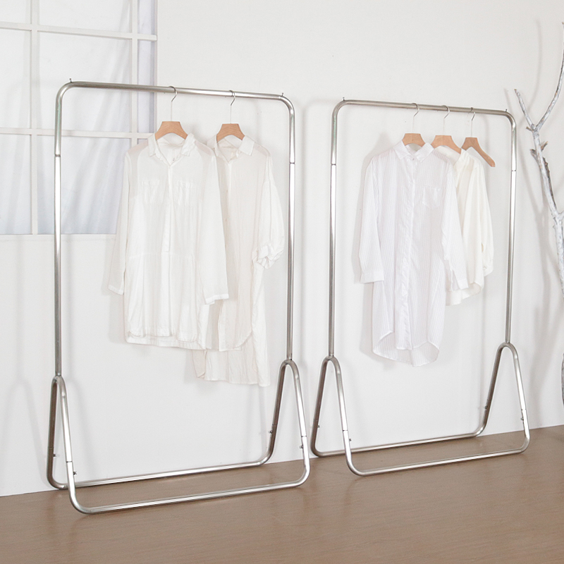 Clothing store display stand Floor-standing light luxury wind hangers Silver women's clothing shelves Stainless steel brushed clothes racks