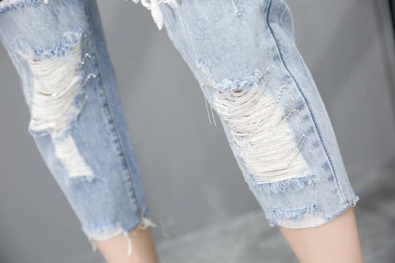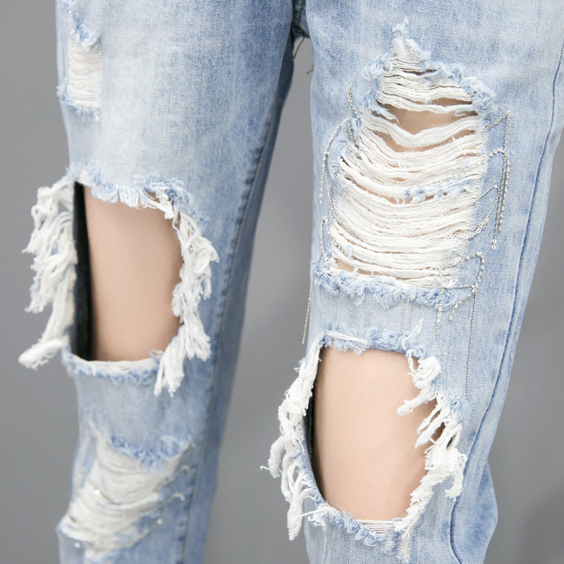 Big Broken Cave Jeans Woman Spring Summer Thin New 90% Pants Loose Kharen Pants 100 Hitch A Slim Beggar Pants Woman