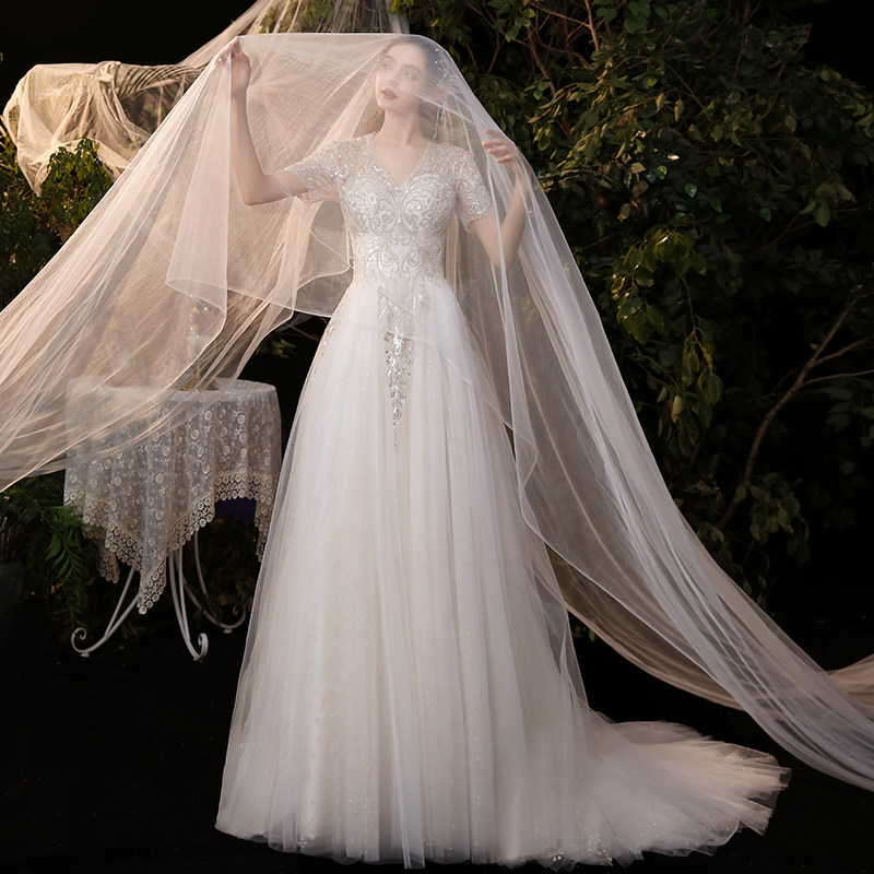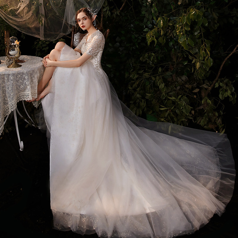 Light Wedding Dress 2021 New Bridal Sensuo Dream Super Fairy Tug Style Herben Little Guy Out of Yarn Temperament
