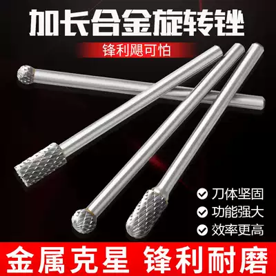 Tungsten steel milling cutter head lengthened carbide rotary file ACD cylindrical spherical electric grinding head woodworking metal grinding head