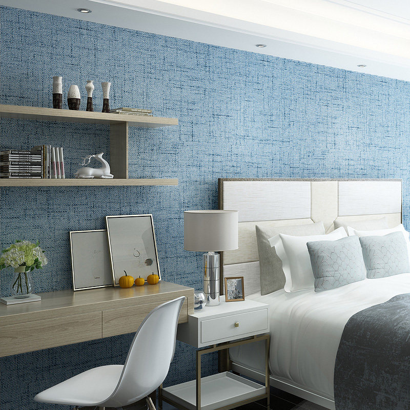 Thickened modern minimalist colour seamless wall fabric linen full house wallbe Nordic wind bedroom living room TV background wall
