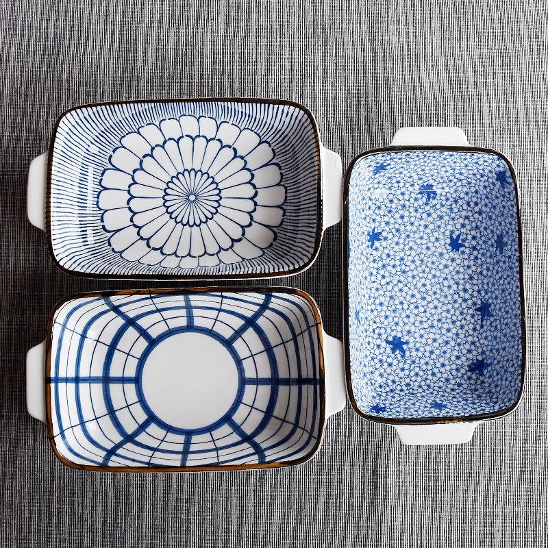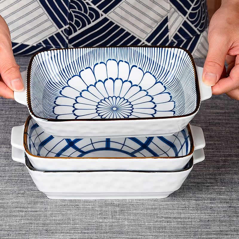 Day-style large rectangular double-ear baking bowl microwave oven Oven Special Bowl with ears Steamed Egg Bowl ceramic baking bowl