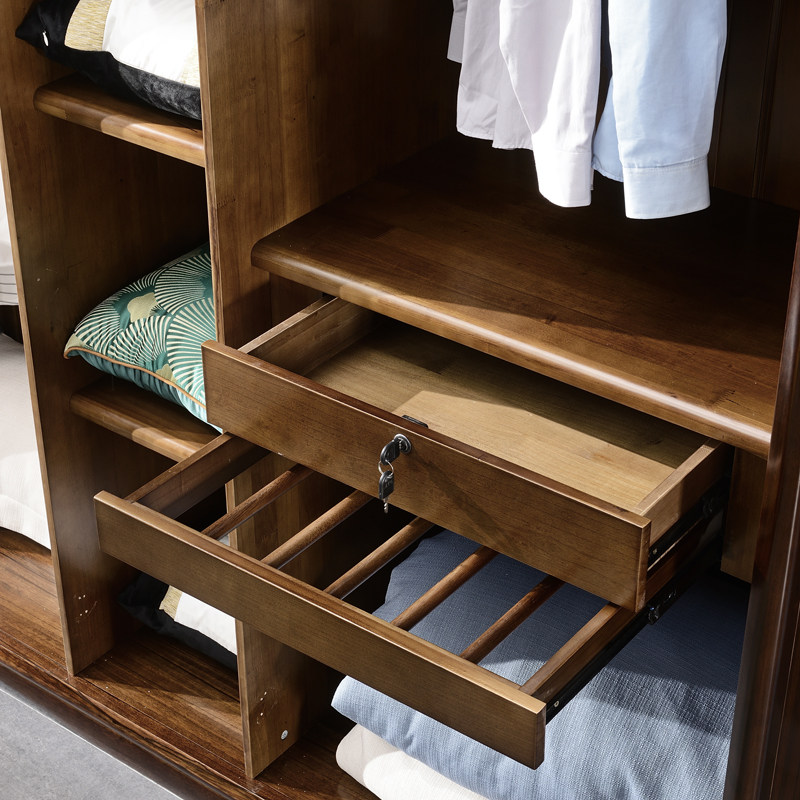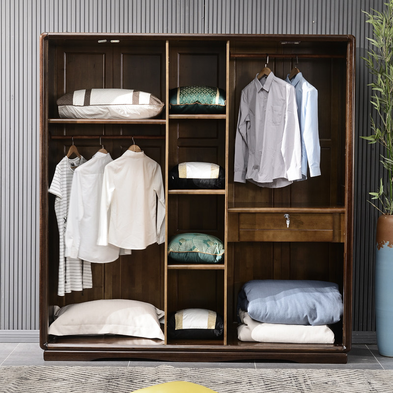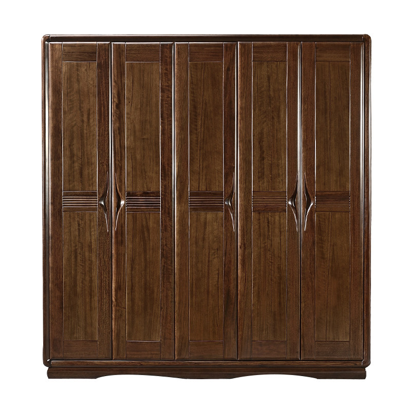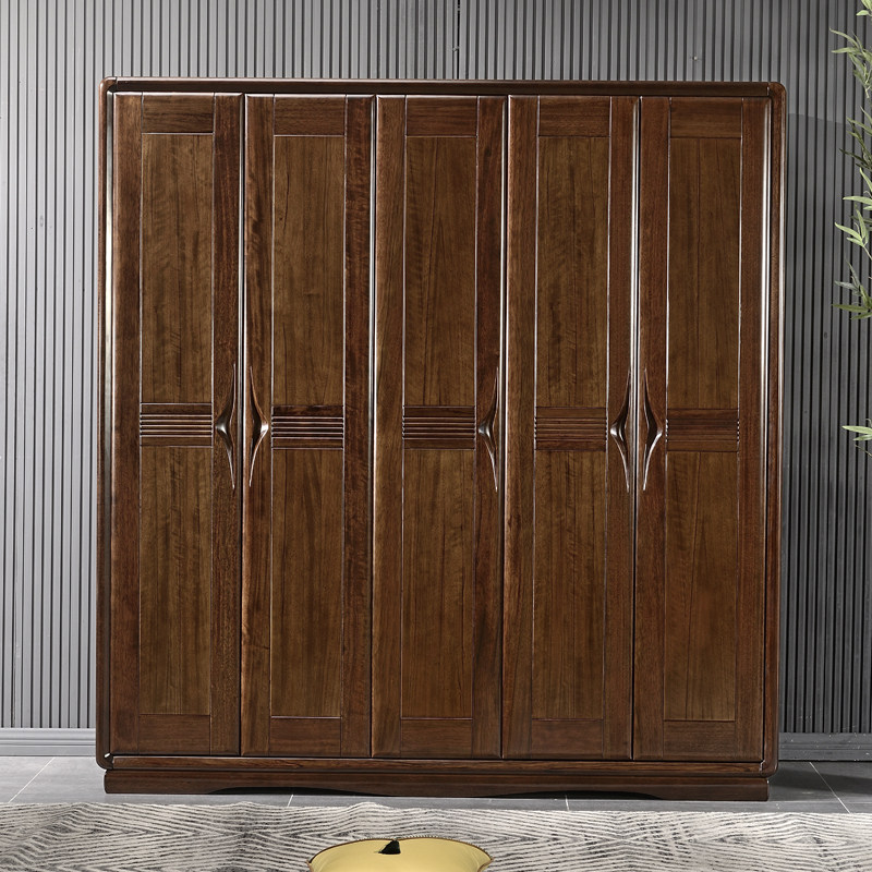New Chinese style black walnut solid wood wardrobe three four five door modern minimalist room master bedroom storage storage cabinet