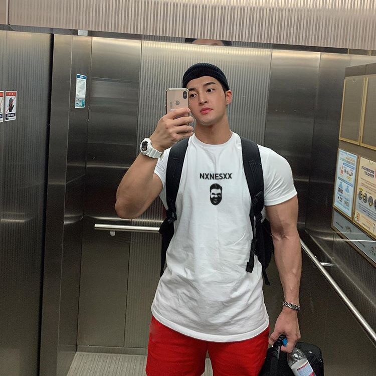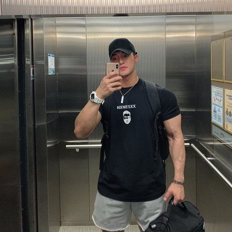 Muscle belief ins fitness short-sleeved men's high street sports tide brand basketball brothers running training clothes casual T-shirt