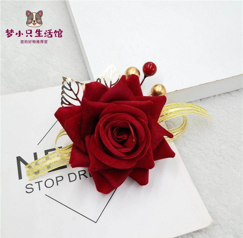 Mother-in-law's head flower wedding bride wearing red hair clip rose gold leaf qipao gown stage accessories wedding