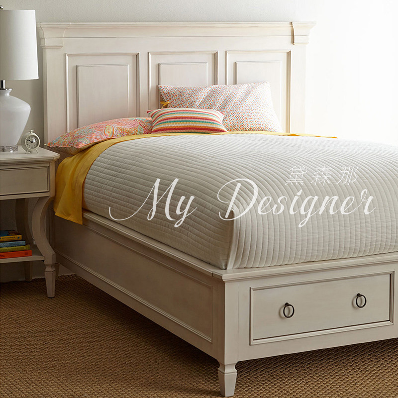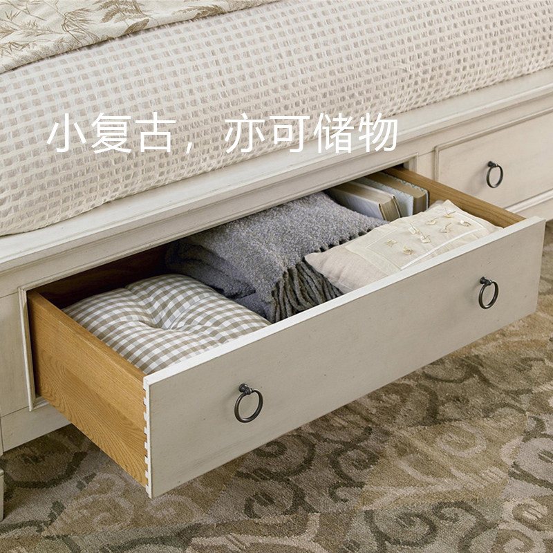 American solid wood bed 18m double bed French retro white storage bed master bedroom queen bed 15m single bed