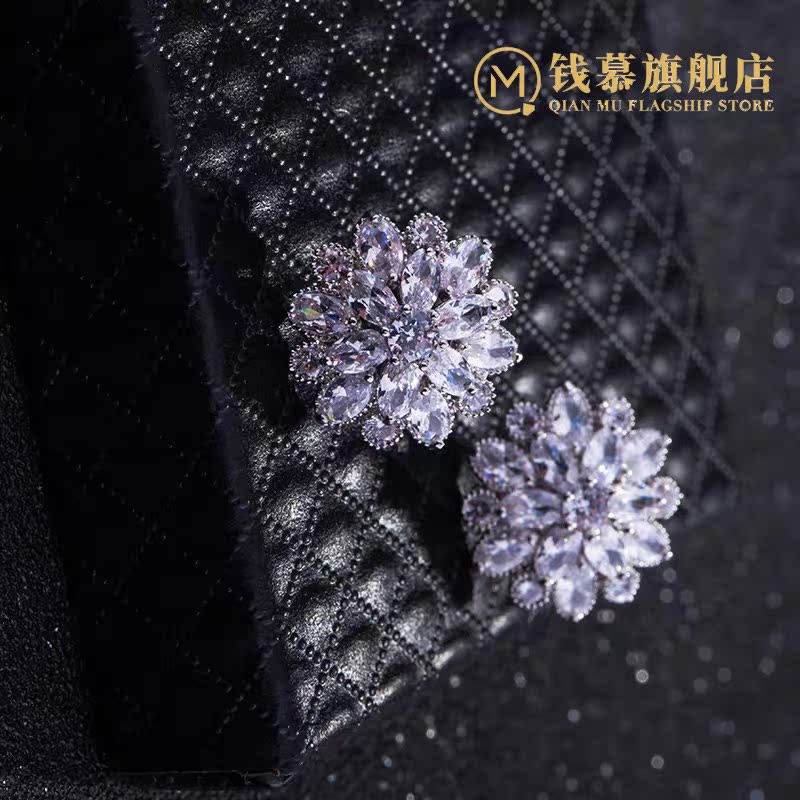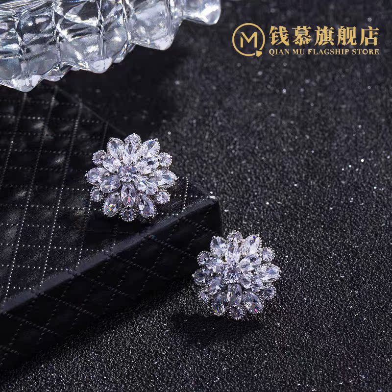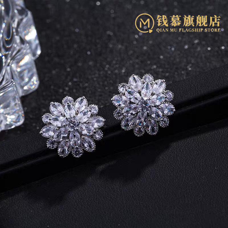 Qian Mu sunflower simulation diamond ear needle S925 sterling silver women's personality design fashion temperament niche ear jewelry