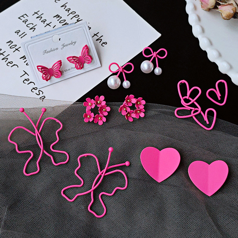 Rose red earrings temperament fashion butterfly earrings sweet heart shape white creative flowers exaggerated silver earrings