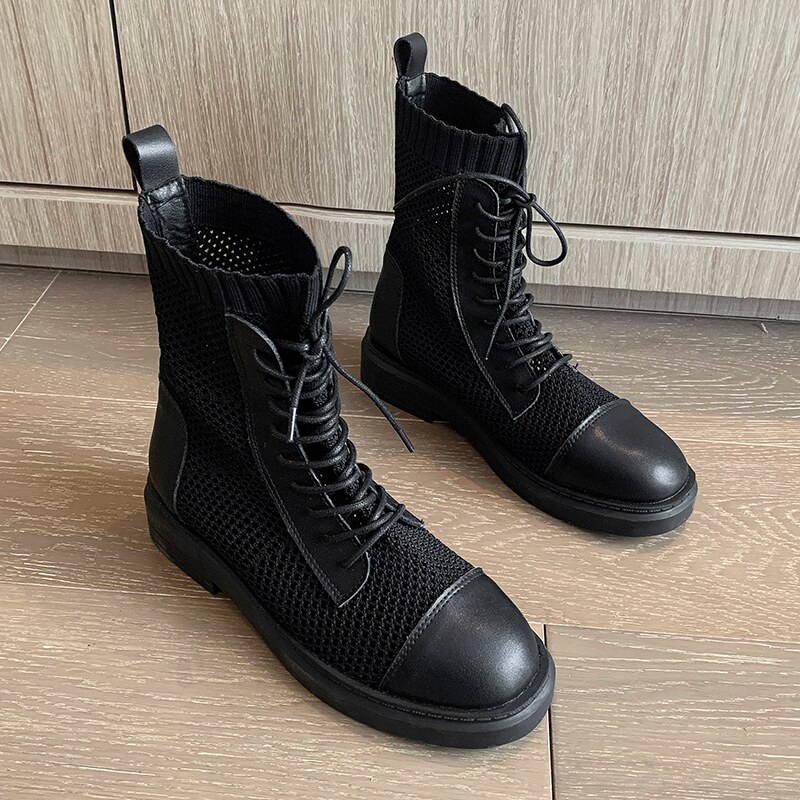 Martin boots women's summer thin section to increase height and thin women's shoes net red show feet small mesh boots hollow boots women's short boots
