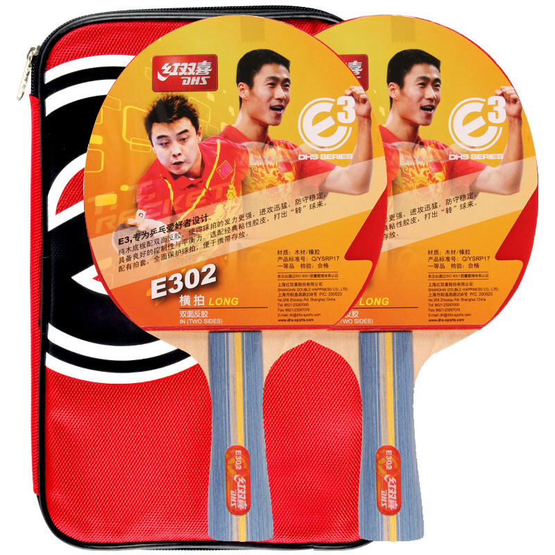 Red Double Happiness (DHS) E3 table tennis racket cross shot set with table tennis (E302 pair shot)