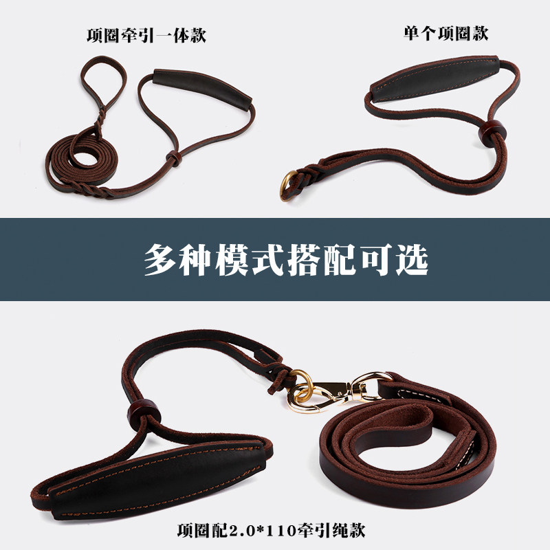 Integrated explosion-proof buffalo leather Puppy dog traction rope Large canine collar gold mullah without Ladin Shepherd dog P chain