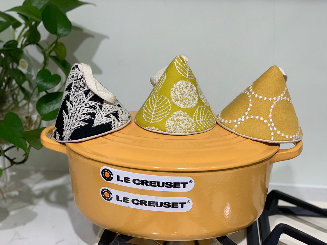 Treasures handmade custom Japanese embroidery small daisy kitchen triangle pot hat anti-scalding heat insulation handmade fabric