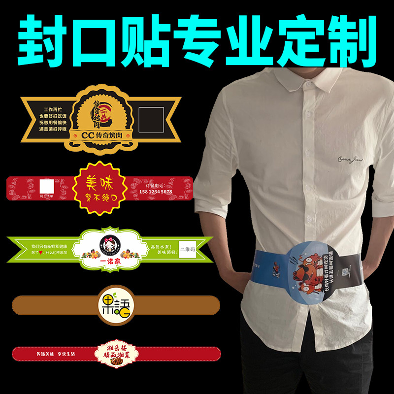 Disposable takeaway packing box packaging box lunch box waist seal sticker custom printing seal plastic box baking packaging bag sushi fruit fishing lunch box logo sealing sticker belt personality customization