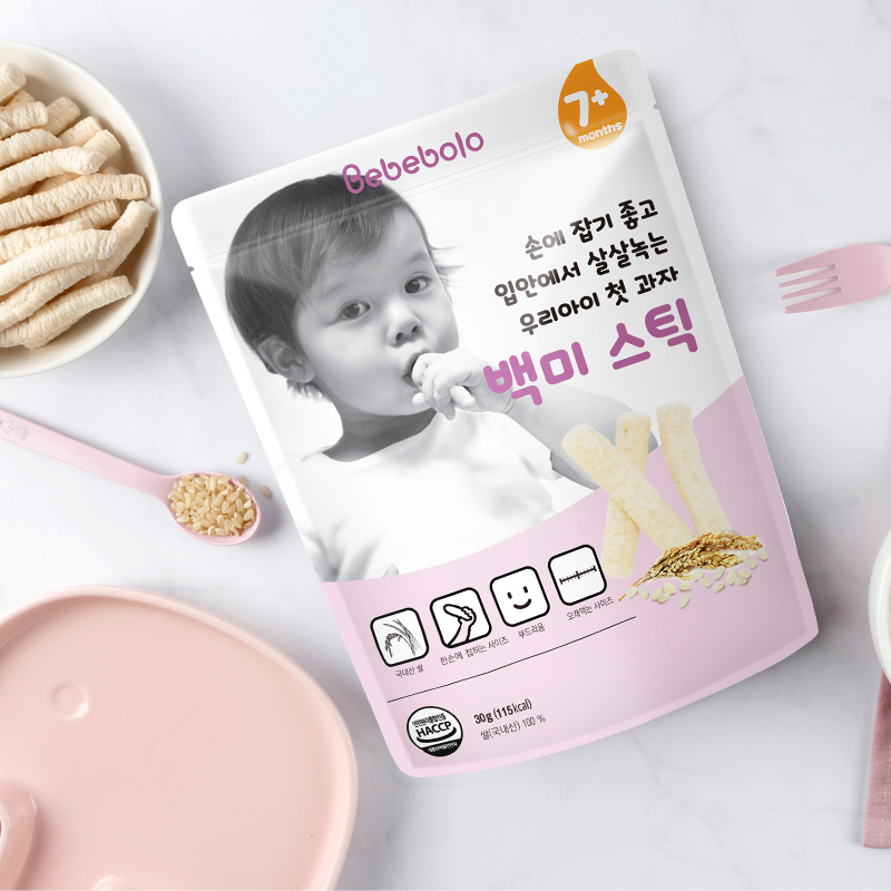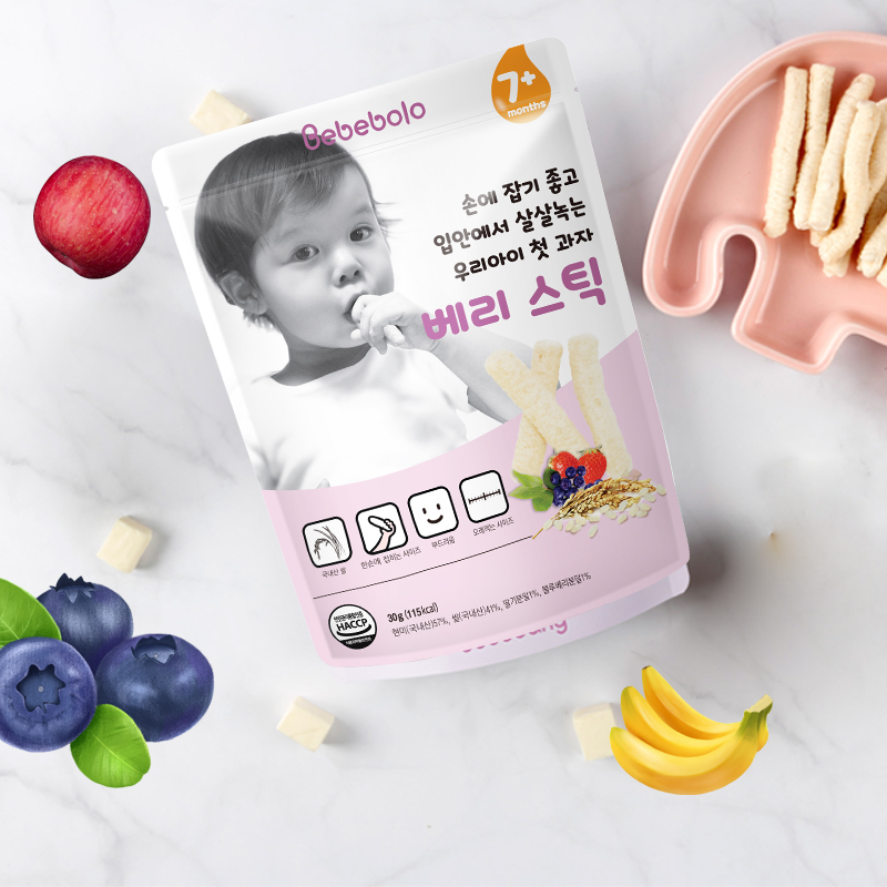 South Korea's Babebuluo baby biscuit puff bar infant sugar-free rice cake 7 months 30g rice bar non-staple food