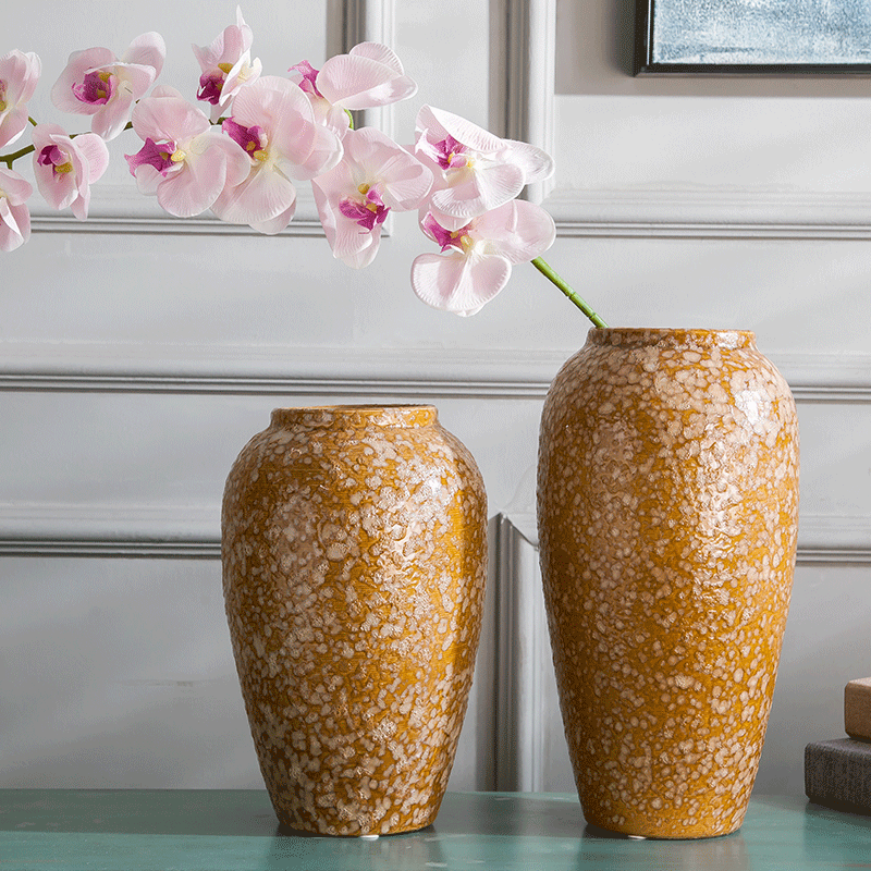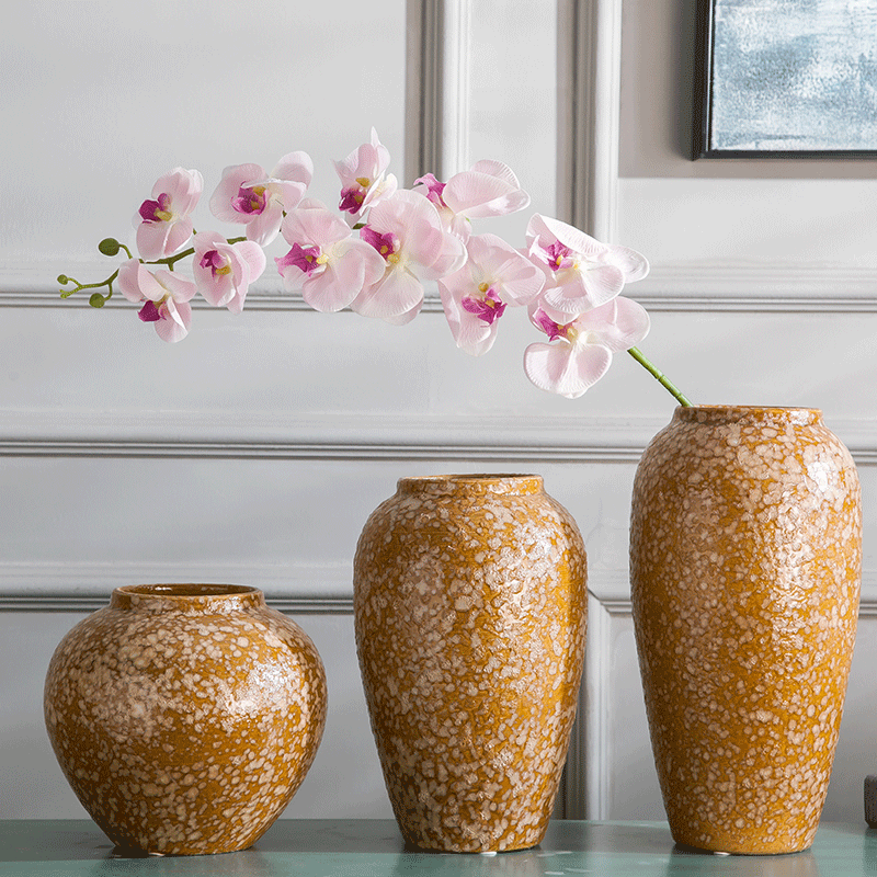 Jingdezhen Ceramic Vase with earth yellow snow flake vase in living room dry flower vase in vase