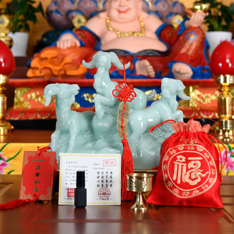 Sanyang Kaitai sheep jade decoration Sanyang creative office desktop Zhaocai living room opening gift decoration