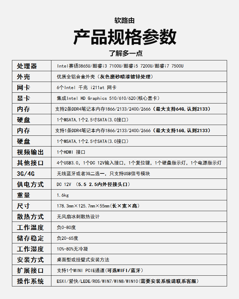 Barebone system (no memory HDD WiFi) 4G memory 32G solid state power supply 4G memory 64G solid state power supply 8G memory 64G solid state power supply 8