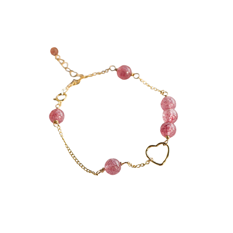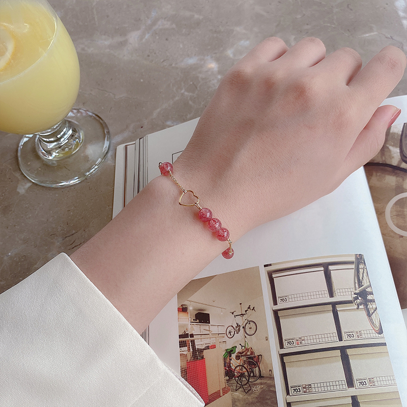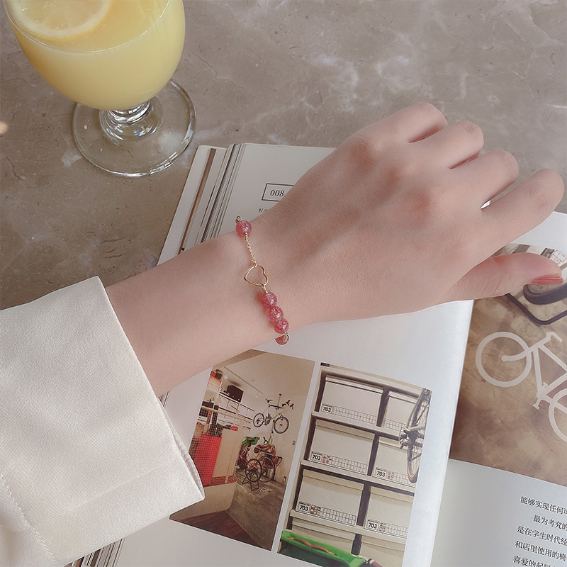 Natural crystal strawberry crystal hand female trick peach blossom transfer powder crystal jewelry ins niche design temperament light luxury