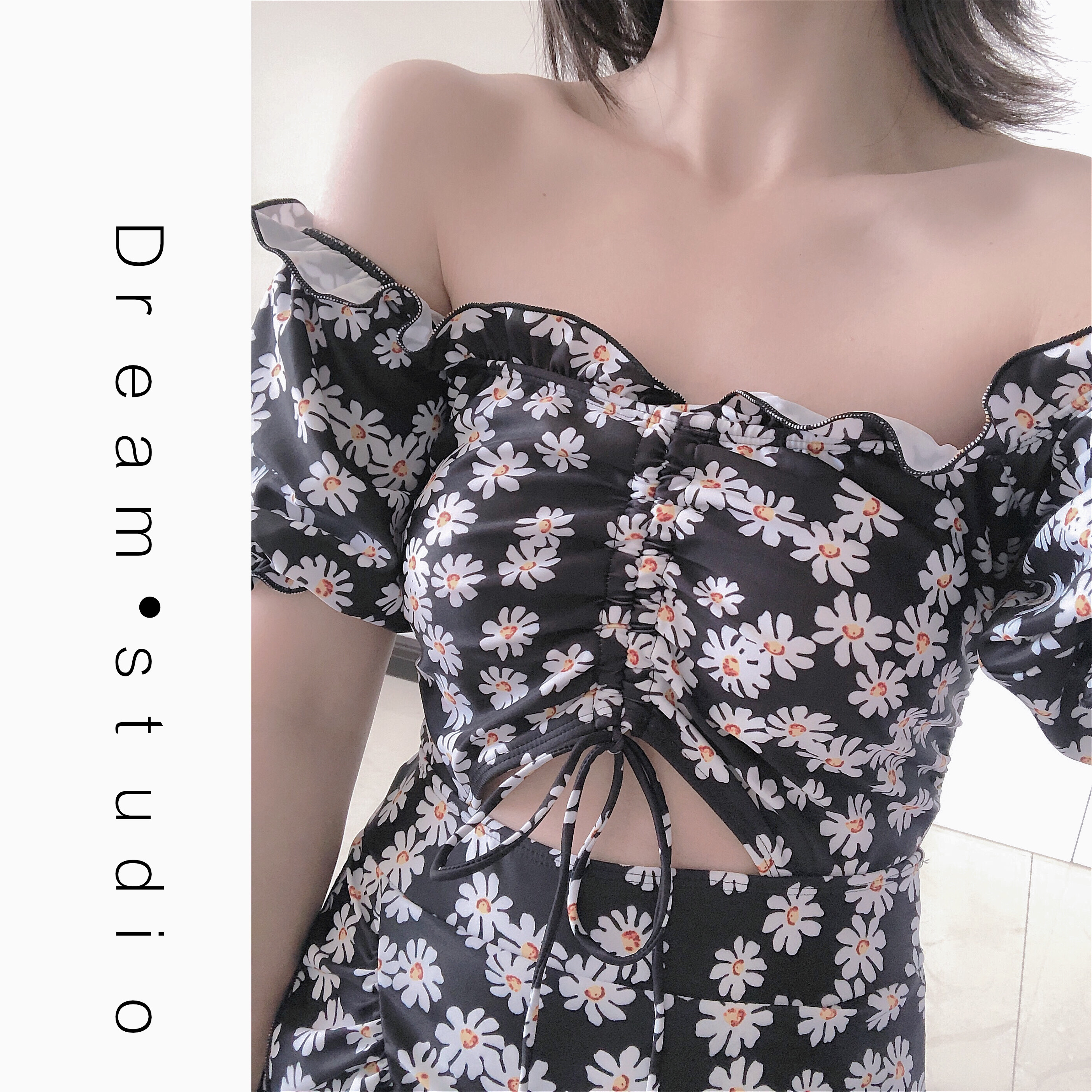 Swimsuit women's summer jumpsuit conservative 2021 new Korean ins cover belly show thin chest gathered seaside swimming suit