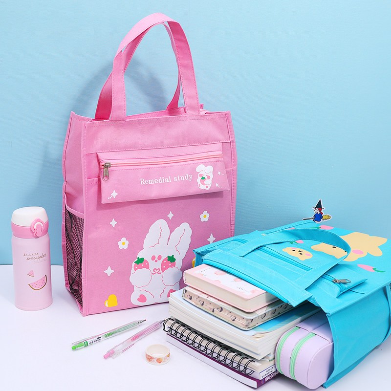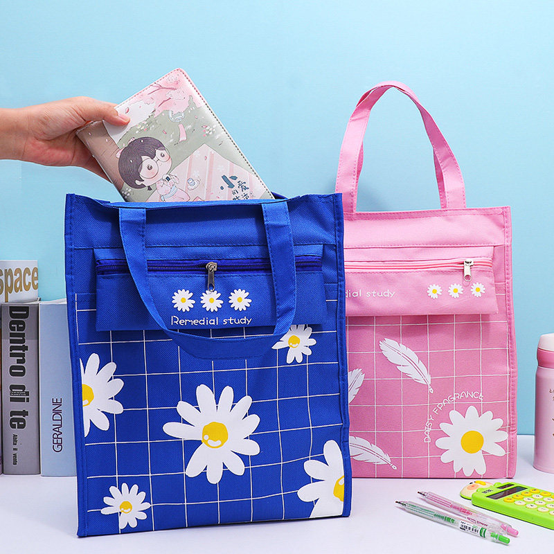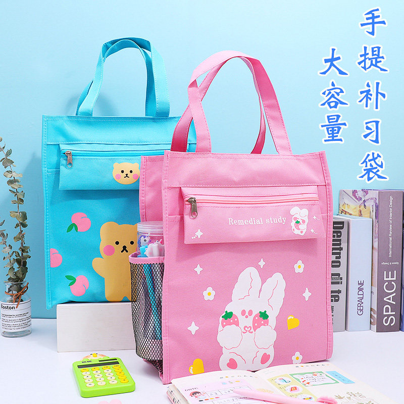 Hand-carrying book bag document bag handbag canvas primary school students with art remedial remedial class bag middle school students cute Korean version of literary children large-capacity boys and girls simple book collection bag