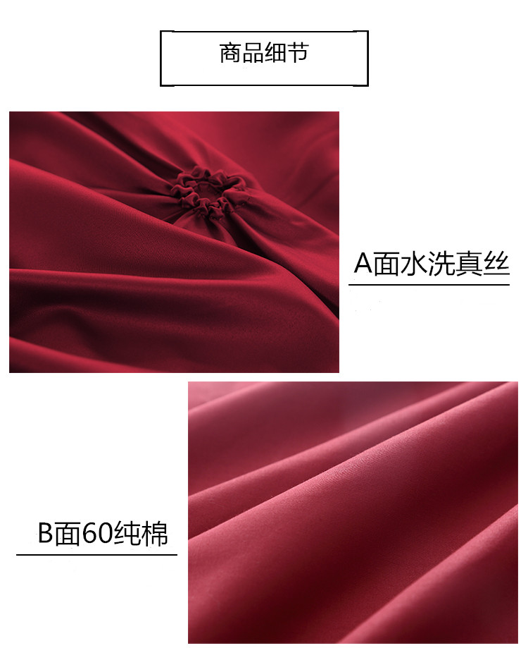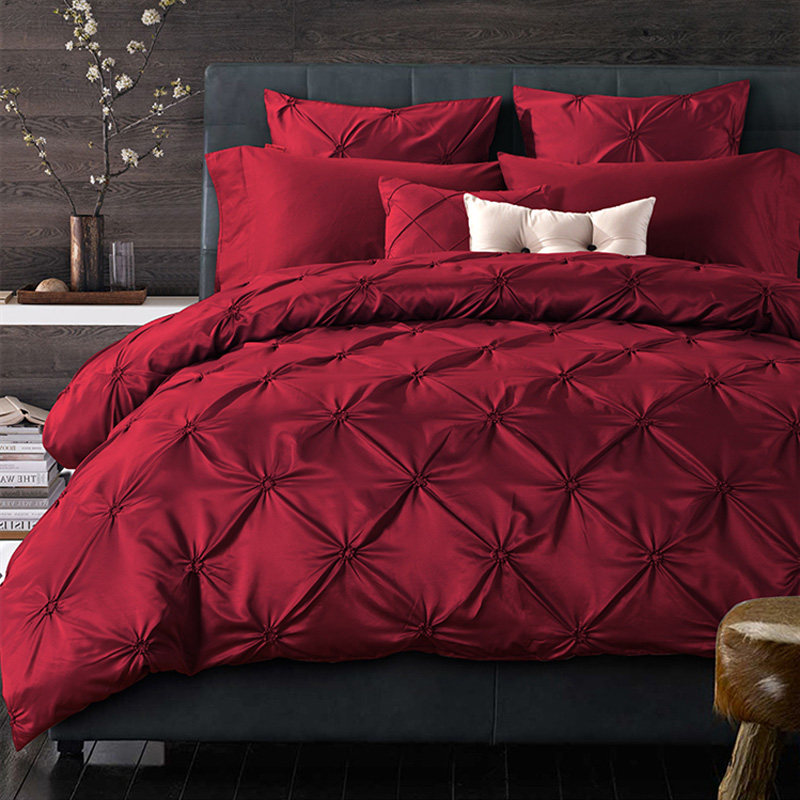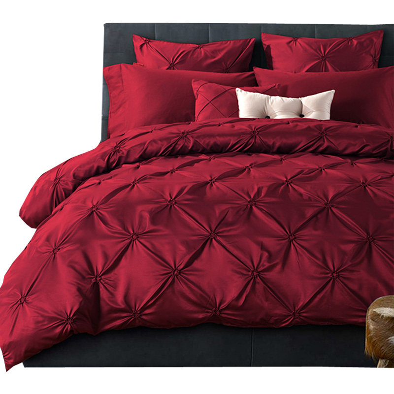 Light Extravagant Style Wine Red Wedding Celebration Four Pieces All Cotton Pure Cotton Linen Quilt Cover 1 8m Bed Hat Wedding Bed Accessories