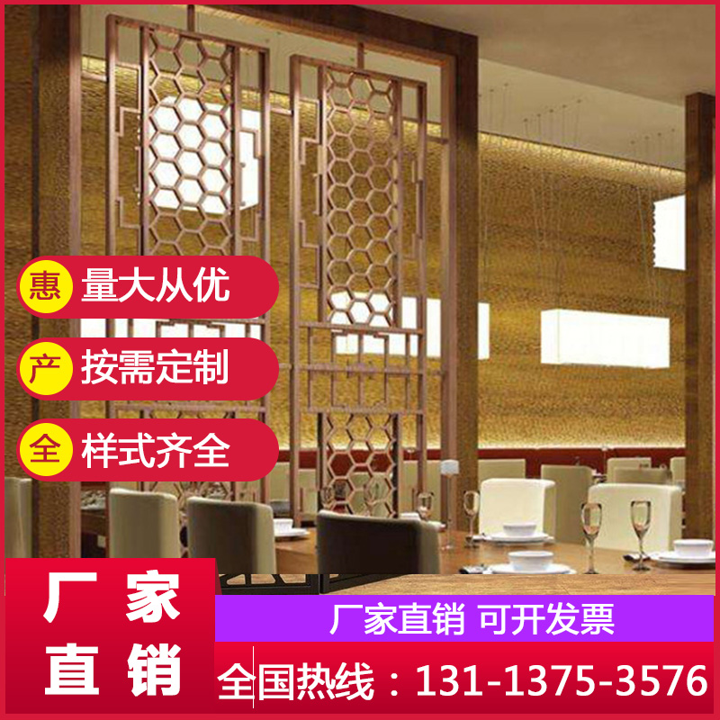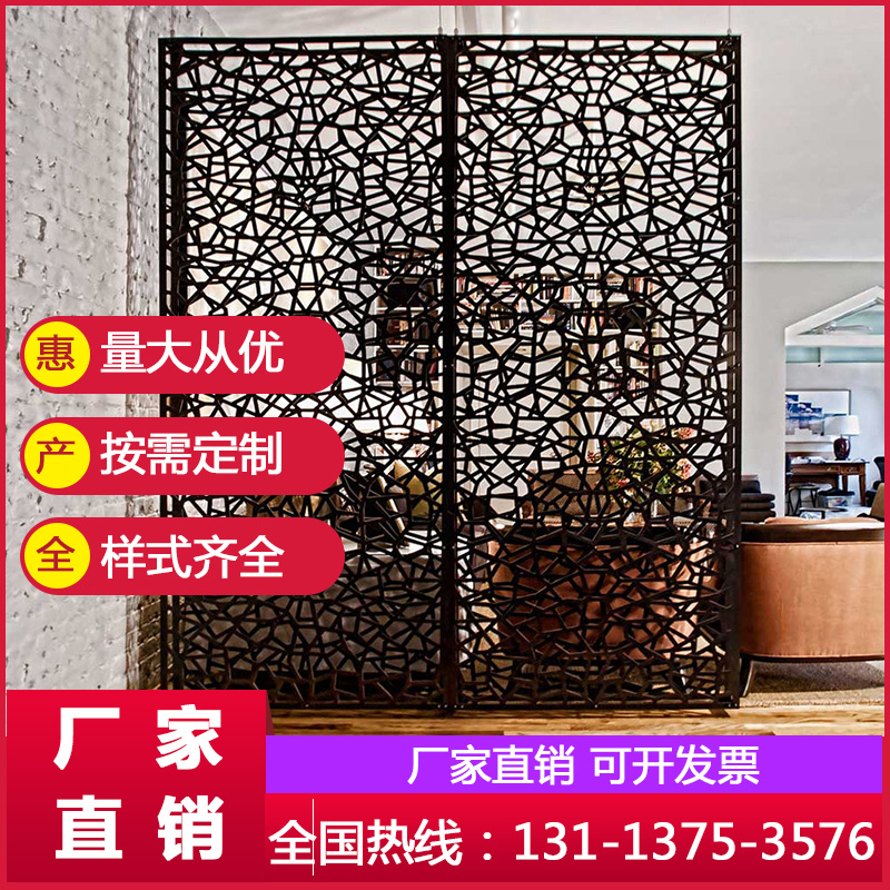 Customized wood grain welded aluminum window flower manufacturer New Chinese-style wood cut-out screen window retro aluminum alloy