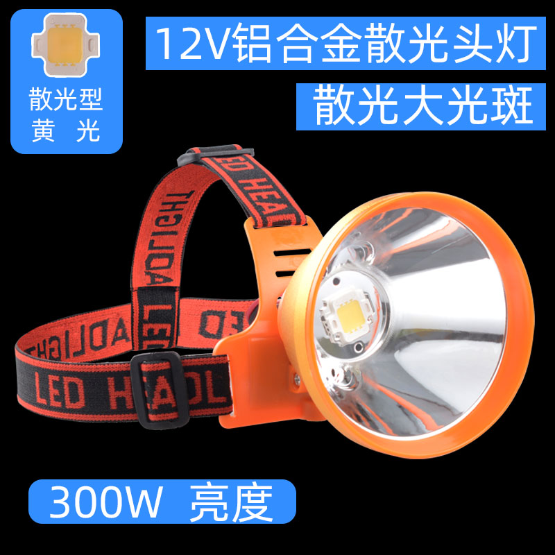 12V headlight LED strong light external battery light yellow light large spot astigmatism light head-mounted flashlight