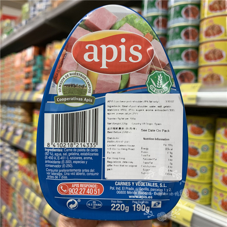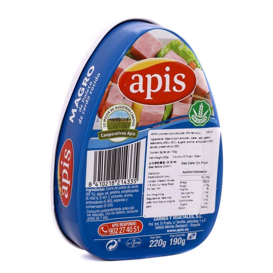 Hong Kong Spain imports APIS pig shoulder lunch meat (9% fat) 190g MAGRO