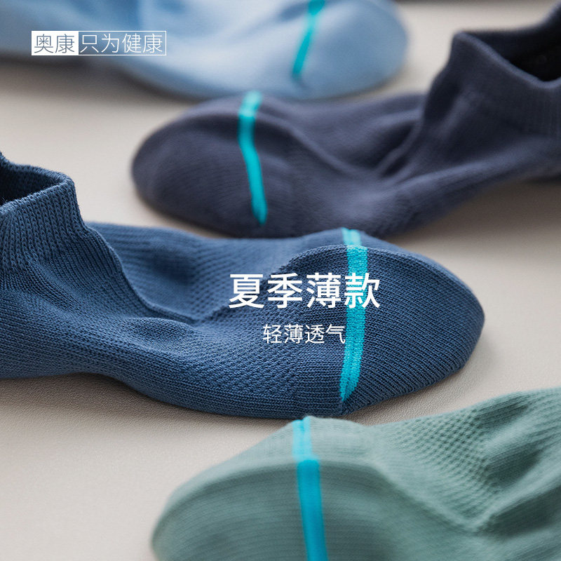 Okom Socks Men's Light Mouth Short Socks Summer Thin mesh Mesh Breathable Odor-absorbing Sweat Invisible Boat Socks Chaosumi