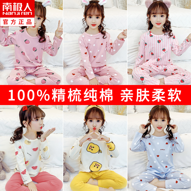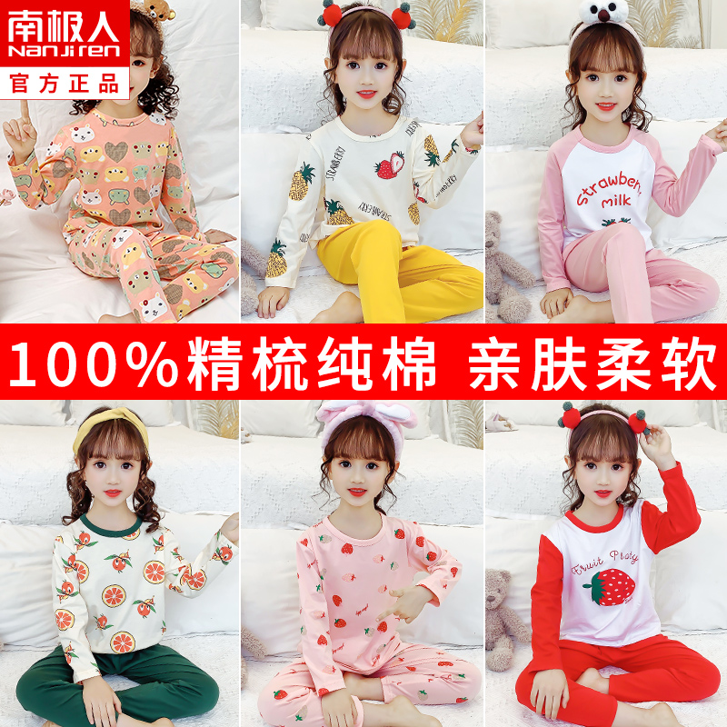 Girls 'pajamas Spring and Autumn pure cotton girls' children's long-sleeved home clothes suit in the summer thin air conditioning clothes for children