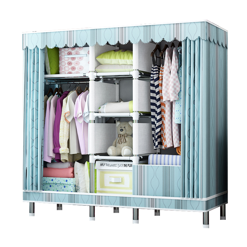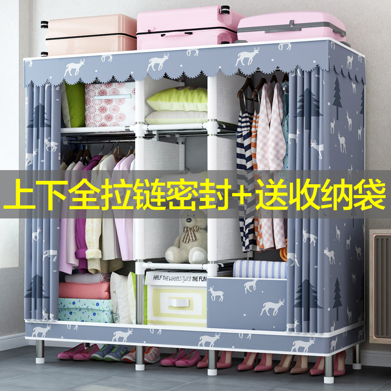 Zipper fully enclosed simple cloth wardrobe steel pipe thickened and reinforced all-steel frame thickened Oxford cloth fabric rental room