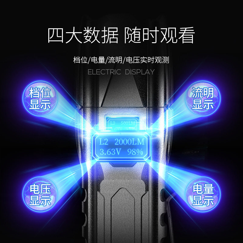 The second-generation P70 flashlight strong light outdoor ultra-bright lithium battery charging long-range zoom P90 high-power digital display searchlight