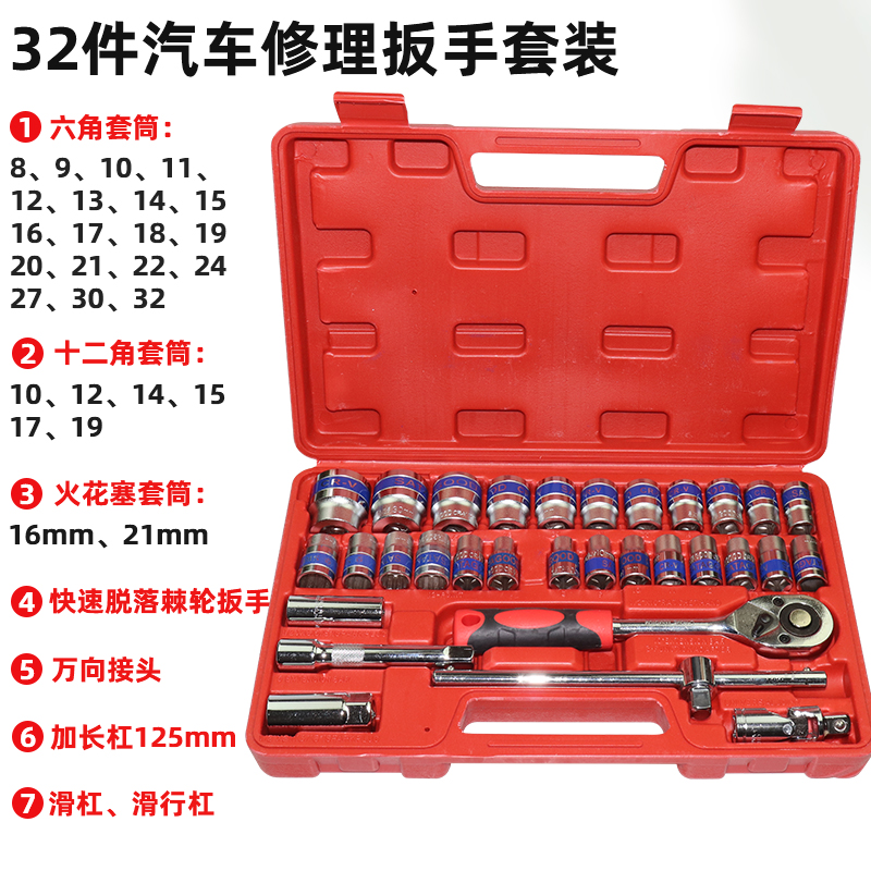 Boutique 37-piece set car ratchet sleeve tool combination auto repair tool wrench set repair hardware set