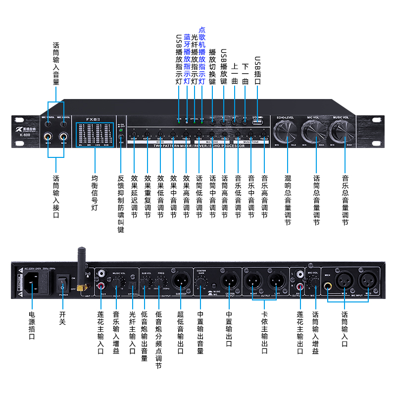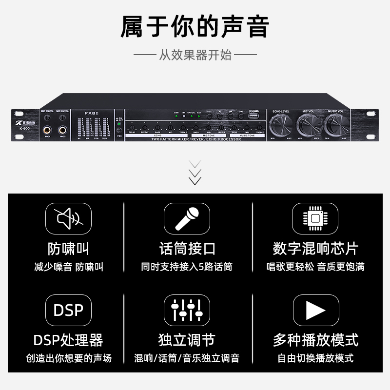 Happy singing K-600 front-stage effectors anti-howl called double digital mixer front level ktv effect processor