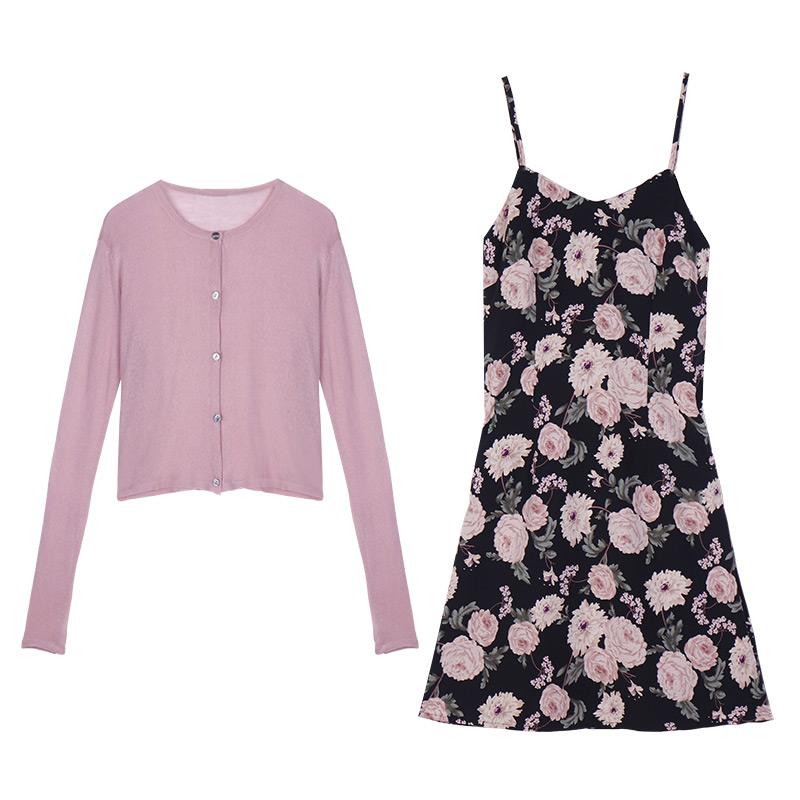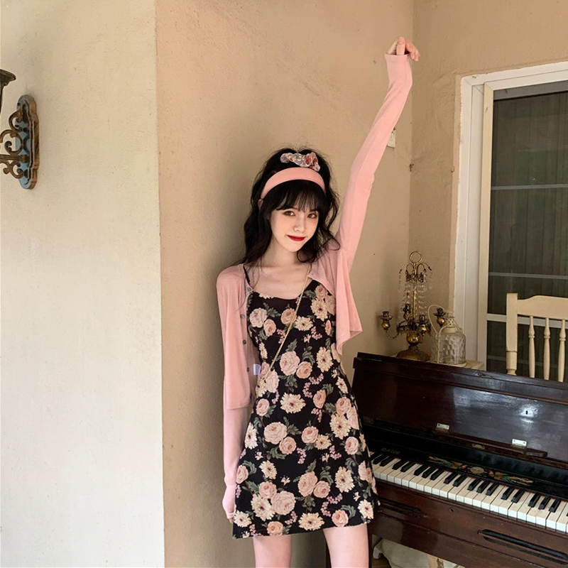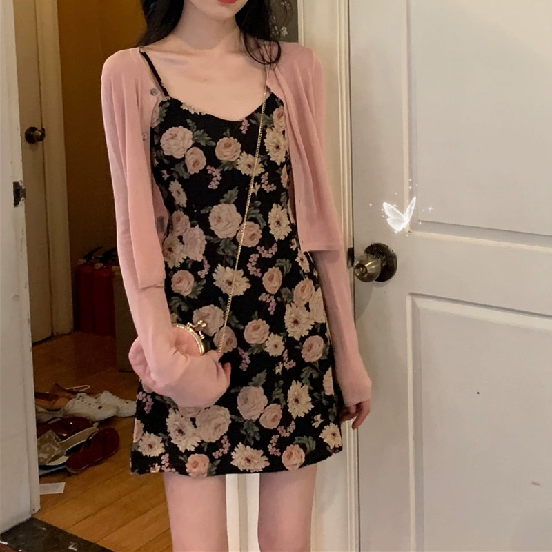 2022 New early spring ultra-fairy dress temperament collection waist display slim and gentle wind crushed flower harnesses foreign dress Summer