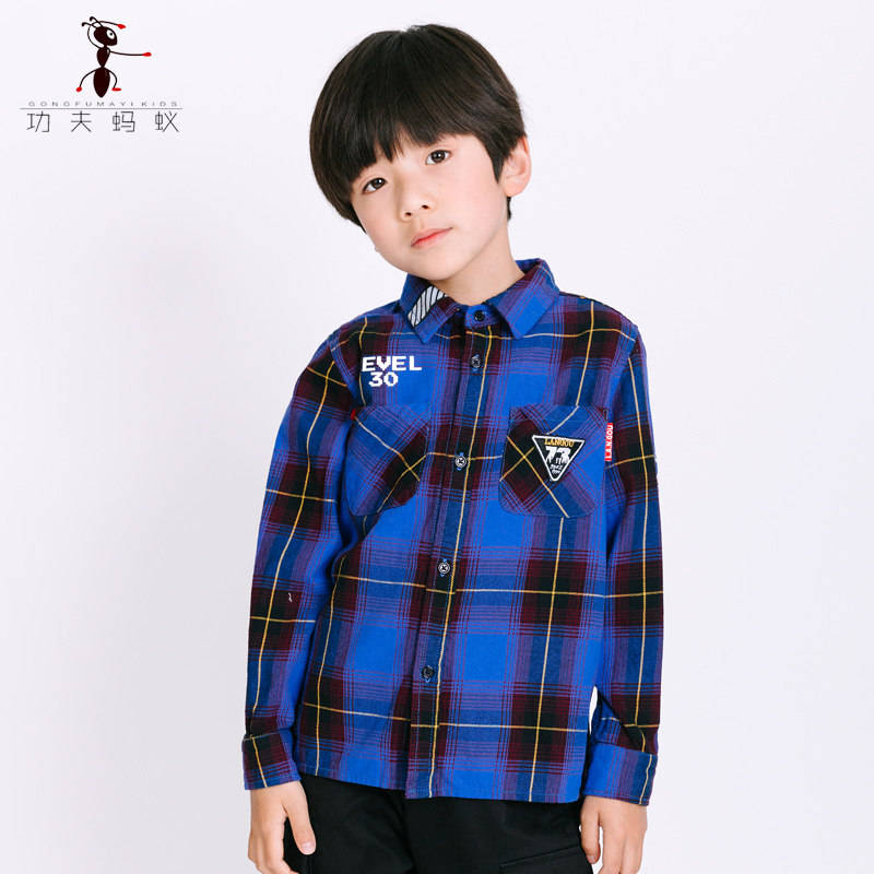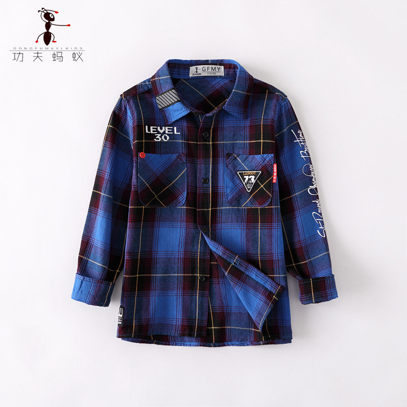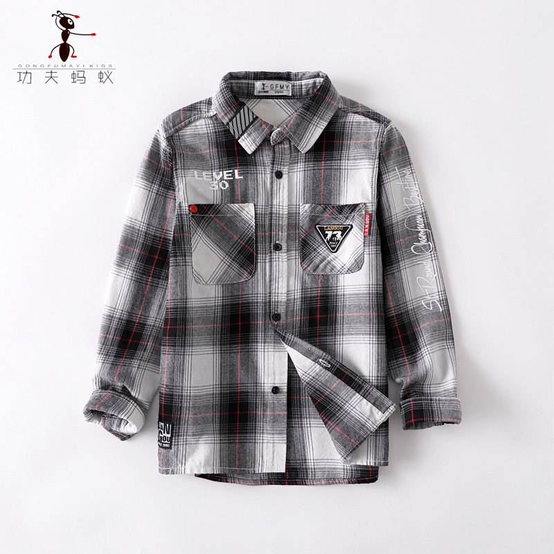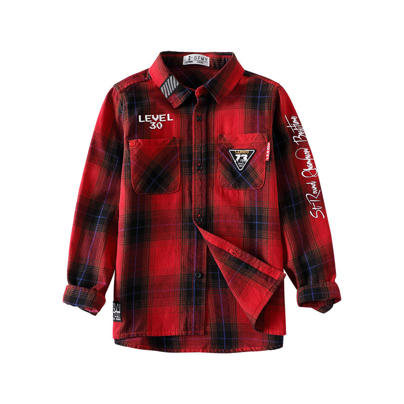 Spring and autumn boys' pure cotton red shirt 2021 spring new medium and large children's long-sleeved plaid shirt inch 5150
