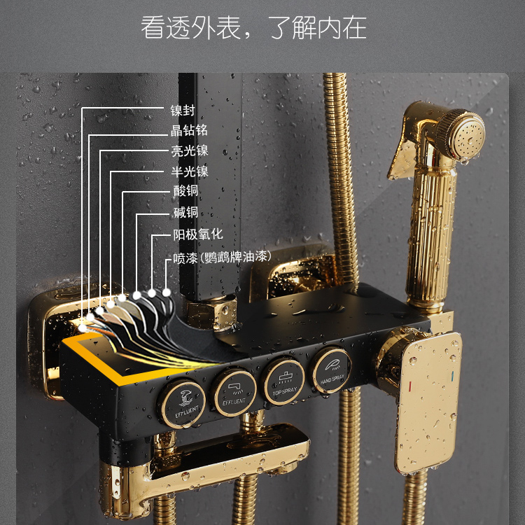 Black gold (hot and cold version) feeding shelf black gold (thermostatic version) feeding shelf black gold (digital display version) feeding shelf white gold (hot and cold version) feeding shelf white gold (thermostatic version) feeding shelf white gold (digital display version) feeding shelf