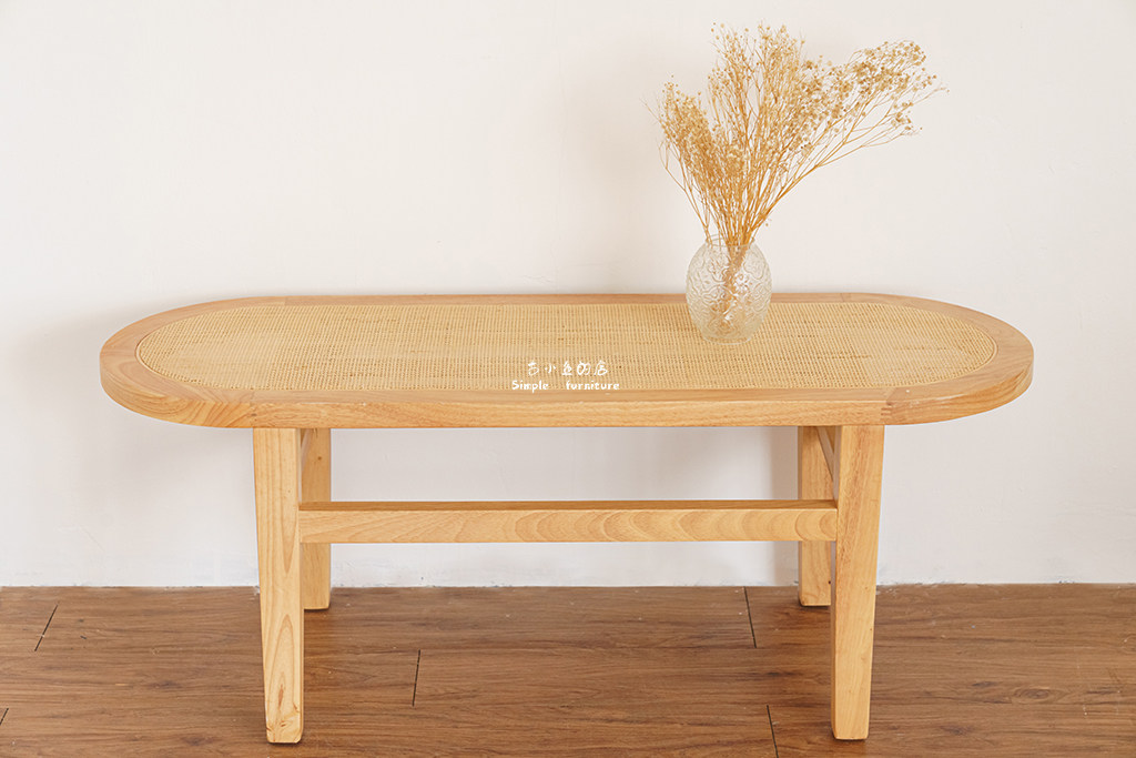 Ancient small fish solid wood rattan bench ins creative shoe change stool home stay bed end stool rest stool tatami long tea table
