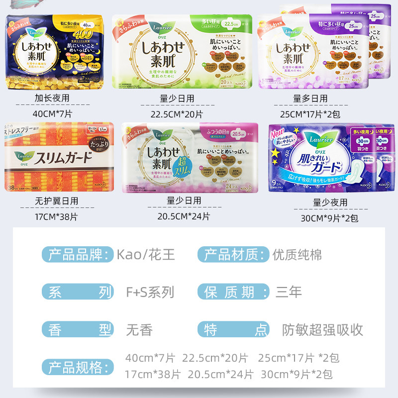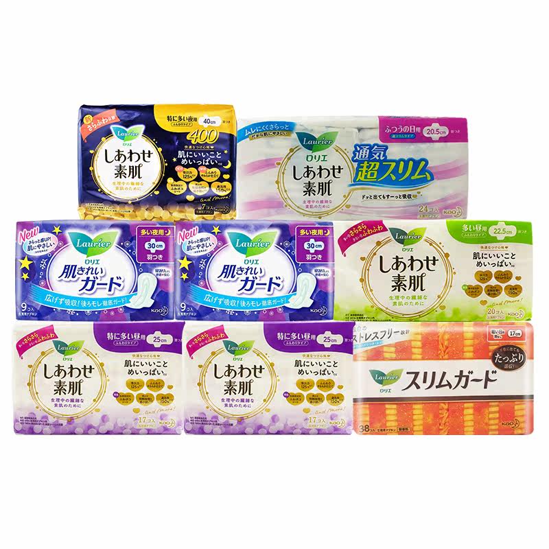 Imported Japanese Kao Leerya sanitary napkin muscle day and night combination full box of soft aunt towel 8 packs of 141 pieces