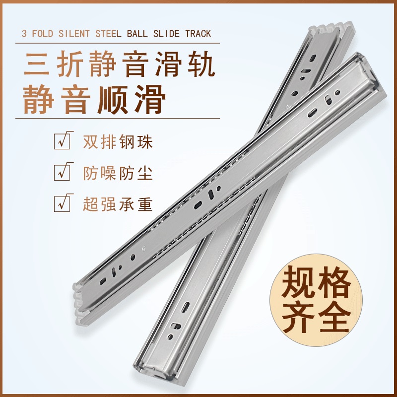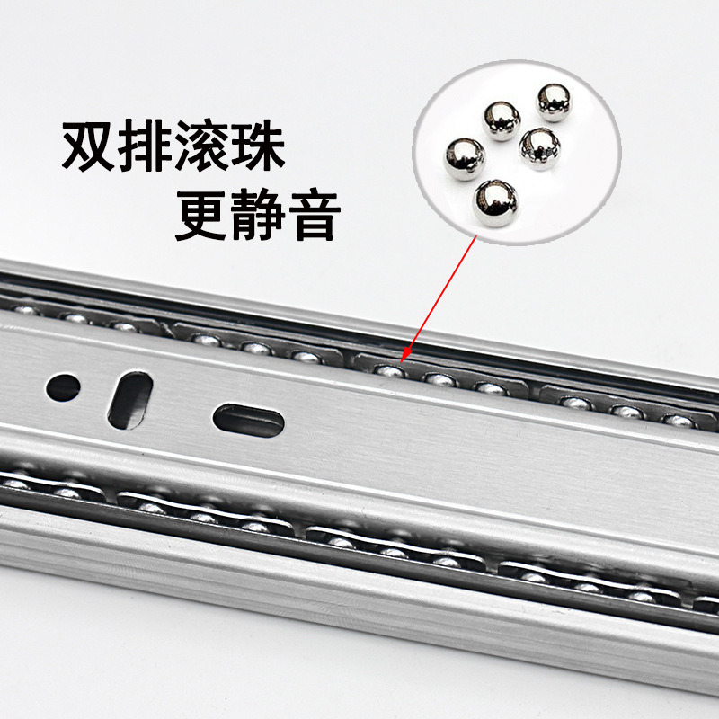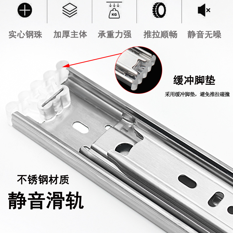 Stainless steel drawer track damping buffer anti-clamper household three slide rail side load guide rail thickening slide track